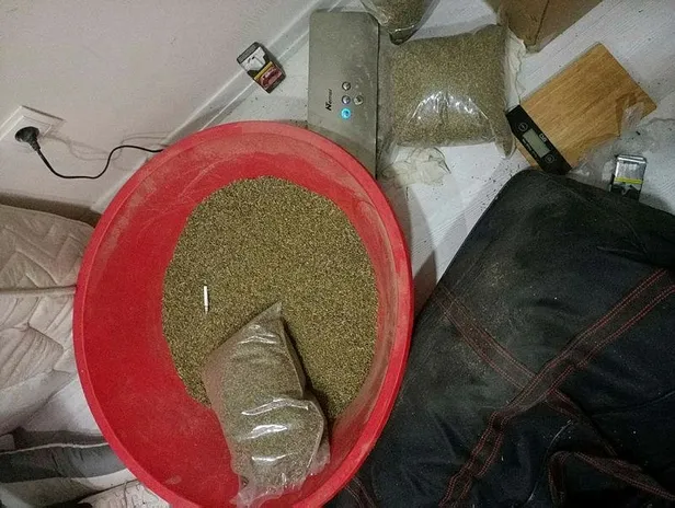 Ardından odalarda didik didik aramaya yapan polis, çantaların içerisine gizlenmiş yaklaşık 55 kilogram "bonzai" diye tabir edilen sentetik uyuşturucu madde ele geçirmişti. Baskın esnasında evde bulunan Taner B. (18) ise çatıya çıkarak kaçtı.