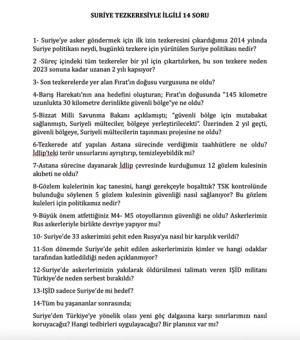 PKK'nın siyasi uzantısı HDP'nin ardından tezkereye hayır oyu vereceklerini açıklayan CHP, skandalın üstüne örtmek için bazı sorular yöneltti.