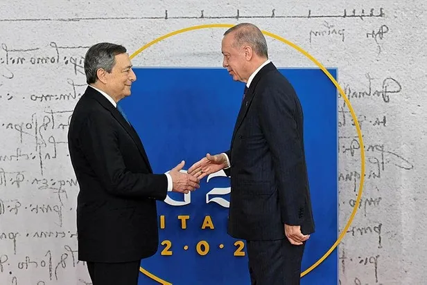Draghi, Başkan Recep Tayyip Erdoğan'ın da aralarında bulunduğu konuklarını tek tek kapıda karşıladı.