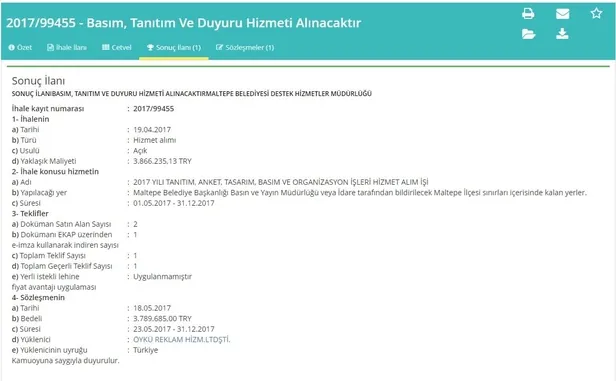 CHP'li Maltepe Belediyesi tarafından açılan hizmet alım ihalesine 100 bin lira sermayeli firmasıyla giren Özkan'ın, değeri milyonları bulan bir ihaleyi nasıl aldığı kafalarda soru işareti doğurdu.