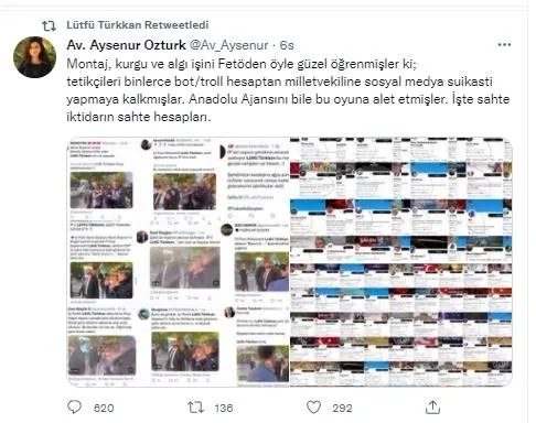 Türkkan'ın FETÖ'nün algı operasyonu için açtığı fake hesapları da RT'lediği görüldü.