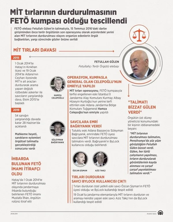 MİT tırlarının durdurulmasının FETÖ kumpası olduğu tescillenmiş, arama yapan askerler ile savcıların örgütten talimat alarak hareket ettikleri belgelenmişti. Yargı ayrıca bu eylemlerin, devletin gizli belgelerini temin ve açıklama suçunu oluşturduğuna hükmetmişti.