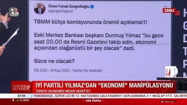 Eski Merkez Bankası Başkanı ve İYİ Parti Milletvekili Durmuş Yılmaz'ın 'Resmi Gazete' üzerinden yaptığı algı operasyonu elinde patladı. Söz konusu skandala CHP ve HDP destek verirken söz konusu spekülasyona Türkiye'nin her kesiminden tepki geldi. Peki, muhalefet 'spekülasyon ittifakı' ile ne amaçlıyor? Sabah Gazetesi Haber Müdürü Nazif Karaman konuyla ilgili A Haber ekranlarında önemli açıklamalarda bulundu. İşte detaylar...