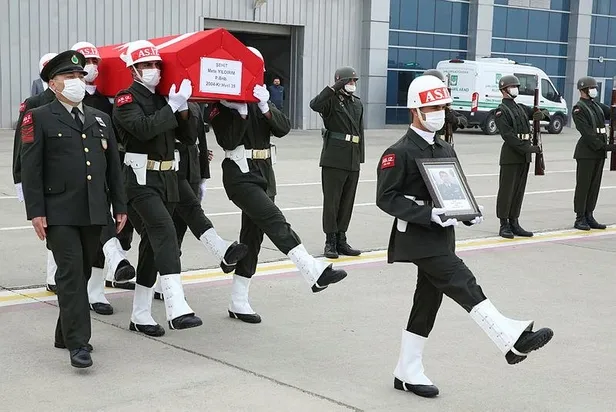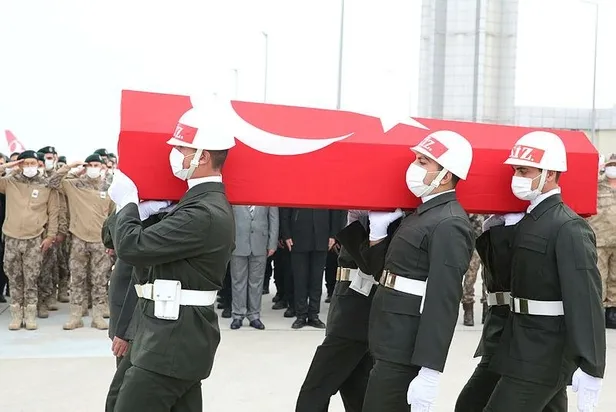 Akçakale Devlet Hastanesi morgundan Türk bayrağına sarılı tabutla çıkarılan şehit Yıldırım'ın (39) cenazesi, askerlerin omuzlarında Şanlıurfa GAP Havalimanı'na getirildi.