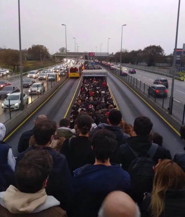 Kuyruk, metrobüse binilen alandan üst geçit üstüne hatta yola kadar taştı. Saniyeler içinde varılan metrobüse, yaşanan yoğunluk nedeniyle adım atamaz hale gelen İstanbullular dakikalar sonra ulaşabildi.
