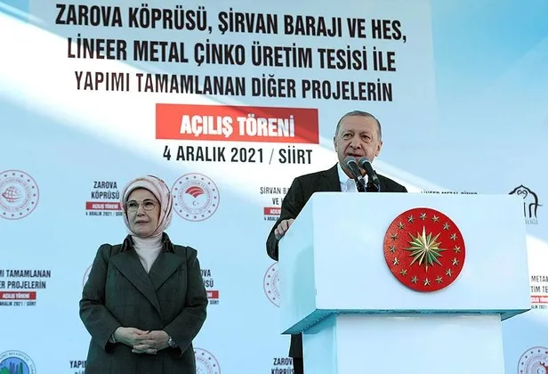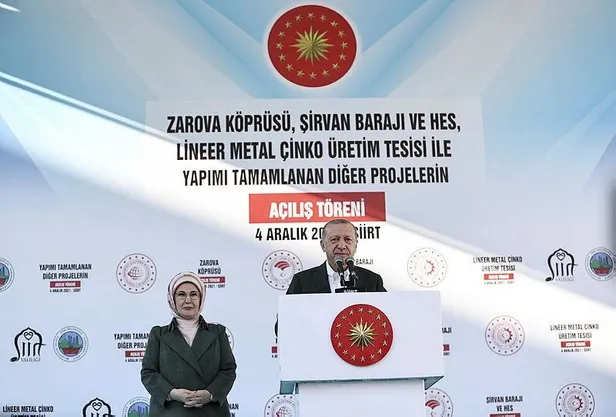 "Hani bizde bir söz var ya. 'Yiğit düştüğü yerden kalkar.' Bu sözü hayata geçiren Siirt demokrasi ve kalkınma mücadelemizde hep yanımızda oldu. Biz de başbakan, cumhurbaşkanı olarak her alanda Siirt'in gelişmesi, büyümesi, ileriye gitmesi için ne gerekiyorsa yaptık, yapıyoruz. Bugün de elimiz boş gelmedik. Şimdi burada şehrimize kazandırdığımız toplam yatırım bedeli 2,5 milyar lirayı geçen 75 kalem eser ve hizmetin resmi açılışını gerçekleştiriyoruz. Biraz sonra kurdele kesme törenine de katılacağımız Lineer Metal Çinko Üretim Tesisi 102 milyon dolarlık yatırım bedeliyle şehrimiz ve ülkemiz için önemli bir yatırım."