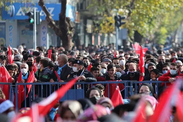 Alanda bulunanların "Dik dur eğilme, bu millet seninle" şeklindeki sloganına Erdoğan, "Hiç merak etmeyin, biz dimdik ayaktayız. Yeter ki siz bize bu gücü verin ve biz de bunula beraber yola devam edelim. Ülkemizin başına toplanan baskı ve zulüm bulutlarını sizinle beraber birer birer dağıttık. Eğitimden sağlığa, ulaşımdan enerjiye, spordan sosyal hizmetlere, her alandaki altyapımızı, insanımızın hak ettiği hizmetleri alabileceği seviyeye getirdik." yanıtını verdi.