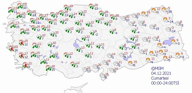 Son dakika hava durumu uyarısı geldi. Meteoroloji Genel Müdürlüğü tarafından yapılan son değerlendirmelere göre ülkemiz genelinin parçalı, yer yer çok bulutlu, Marmara, Ege, Batı Akdeniz, İç Anadolu, Batı ve Orta Karadeniz ile Malatya, Elazığ, Tunceli ve Erzincan çevrelerinin yağmur ve sağanak, Kıyı Ege ile Batı Akdeniz kıyılarının yer yer gök gürültülü sağanak yağışlı geçeceği tahmin ediliyor. Yağışların Marmara'nın batısı, Kıyı ve Güney Ege ile Antalya ve Burdur çevrelerinde kuvvetli, Güney Ege kıyılarında çok kuvvetli, Muğla çevreleri ile Aydın'ın kıyı kesimlerinde yer yer şiddetli ve aşırı olması bekleniyor.