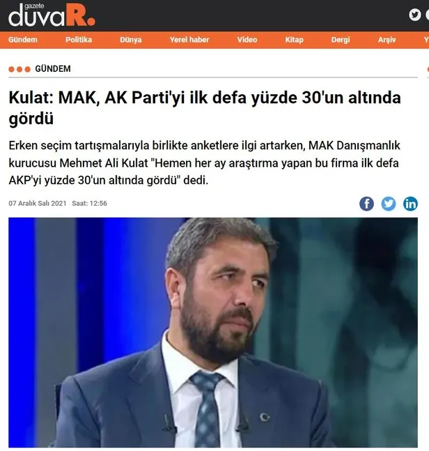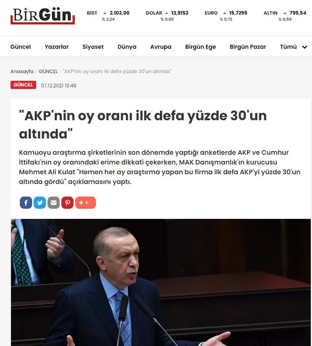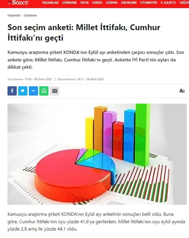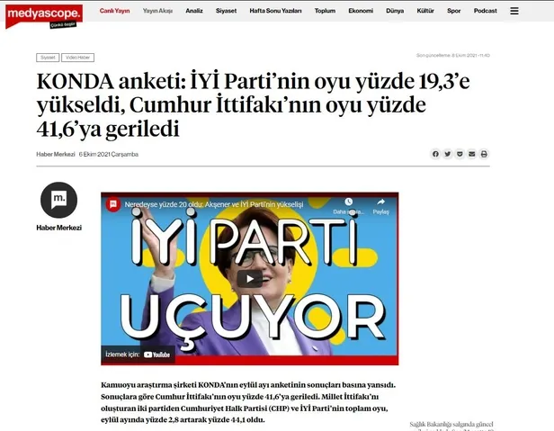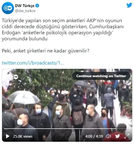 Mesela Almanya'nın Türkiye operasyonları merkezi Deutsche Welle Türkçe'nin (DW) 19 Ekim 2021 tarihli, "Anket şirketleri ne kadar güvenli" haberi, baştan sona AK Parti ve Cumhur İttifakı'nın oy kaybetmesi üzerine kurulu. Bütün veriler buna işaret ediyor ve başta Konda olmak üzere Metropoll ve MAK Danışmanlık şirketlerinin verileri kullanılıyor.