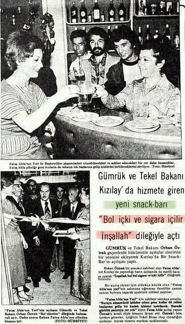 Ayrıca 1962 ve 1975'te Gümrük ve Tekel Bakanı olarak görev alan babası Orhan Öztrak'ın "Bol içki ve sigara içilir inşallah" dileğiyle bir 'snack bar' açtığı görülüyor.