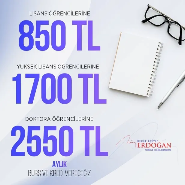 "Bu akşam bir müjdeyi de üniversite öğrencilerimize verdik… Yeni burs ve öğrenim kredisi rakamlarının öğrencilerimize ve ailelerine hayırlı olmasını diliyorum."