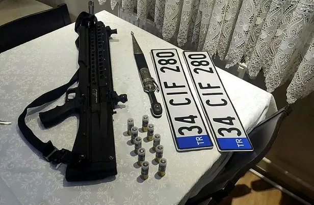 Zanlının Çorlu'daki adresinde yapılan aramada da, 1 pompalı tüfek, 12 mermi, kama ve sahte araç plakası bulundu.