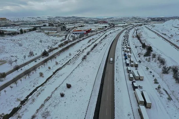 Zincirsiz tırların Bolu Dağı'ndan geçişine izin verilmediğini bildiren yetkililer, Türk Kızılay ekiplerince 150 kilometrelik güzergah boyunca yol kenarındaki araçlara yiyecek ve sıcak ikram dağıtımı yapıldığını kaydetti.