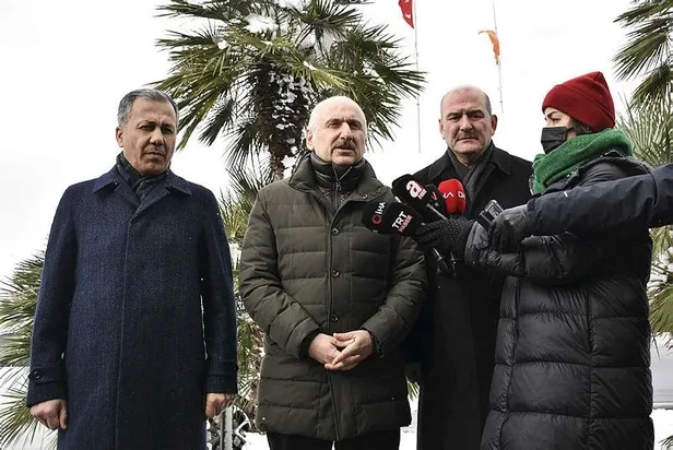 İstanbul'da dün etkisini artıran kar yağışı nedeniyle binlerce insan evlerine ulaşamayarak otel, misafirhane ve yurtlara yerleştirildi. İBB'nin çalışmalarının yetersiz kalması İstanbulluyu perişan edince Başkan Erdoğan devreye girdi. İçişleri Bakanı Süleyman Soylu, Ulaştırma ve Altyapı Bakanı Adil Karaismailoğlu ve AFAD Başkanı Yunus Sezer, Başkan Recep Tayyip Erdoğan'ın talimatı üzerine İstanbul'a geldi. İki bakan kar bölgesinde son durumu açıkladı. Bakan Karaismailoğlu, "4700 KM'lik İstanbul Bölge müdürlüğündeki merkezde çok önemli çalışmalar yapıldı. Olumsuz hava şartları altında 11 bin vatandaşımız bu mücadeleyi verdiler. Süreç sıkıntılı geçti tabi. Mahmutbey ve Hadımköy kavşağı arasında yolda terk edilmiş araçlar nedeniyle trafik durdu. Terk edilmiş araçların ortadan kalırılması gerekiyor. Trenler hızlı trenler Ankara-İstanbul arasında çalışıyor. Marmaray sabaha kadar ücretsiz olarak hizmet edecek vatandaşlara." açıklamasında bulunurken, Bakan Soylu, "Kar yağışı perşembe gününe kadar İstanbul'da devam edecek. Mümkün olmadıkça özel araçlarınızla yola çıkmayın." dedi. Son olarak 17.30'da A Haber ekranlarına katılan Bakan Karaismailoğlu son durumu açıkladı.