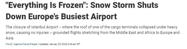 Hindistan merkezli NDTV ise 'Her Şey Donmuş' diyerek Avrupa'nın en yoğun İstanbul Havalimanı'nın kapatıldığını haberinin başlığına taşıdı.