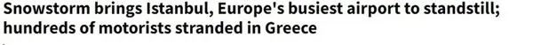Times Now News ise yine İstanbul Havalimanı'nında uçuşların durmasından bahsederek yüzlerce sürücünün mahsur kaldığını dile getirdi. Aynı zamanda benzer durumların Yunanistan'da yaşandığı bilgisine de haberde yer verdi.