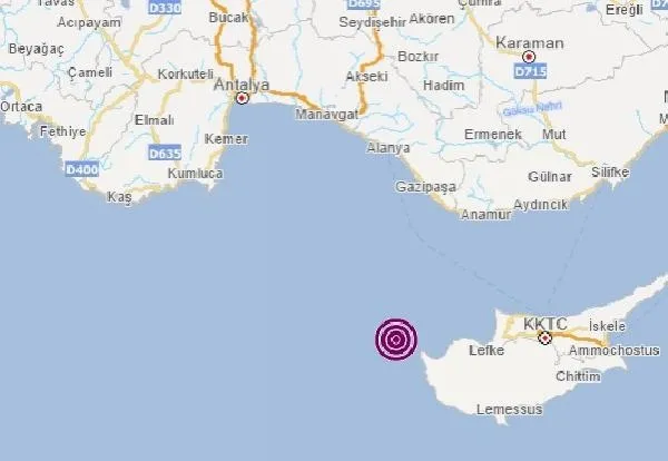 Akdeniz açıklarında 4,3 büyüklüğünde deprem meydana geldi.