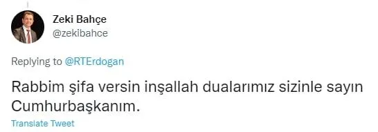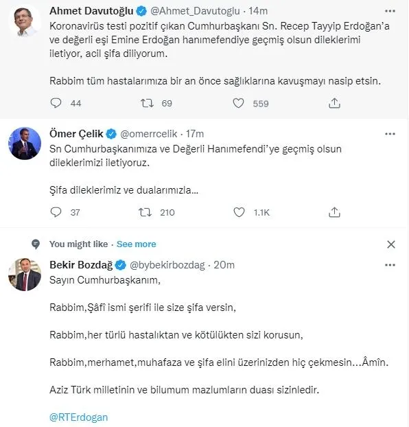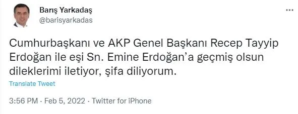 Erdoğan'ın açıklaması sonrası sosyal medyadan gerek siyasiler gerek vatandaşlar geçmiş olsun mesajı yağdırdı. İşte o mesajlardan bazıları: