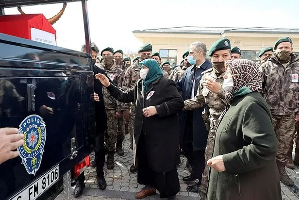 Erdoğan, Yenimahalle Çamlıca Mahallesi'ndeki evde şehit Eren'in eşi Sadiye Eren ve yakınları tarafından karşılandı.