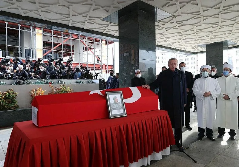 Son dakika haberine göre Başkan Erdoğan, Senegal'deki görevi esnasında geçirdiği kalp krizi sonucu şehit olan Cumhurbaşkanlığı Koruma Dairesi Başkanlığı Özel Harekat Şube Müdürü Hayrettin Eren için Ahmet Akseki Camii'nde düzenlenen cenaze törenine katıldı.
