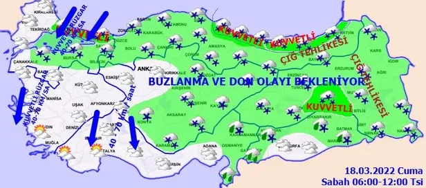 Kuzey, iç ve doğu kesimlerde buzlanma ve don olayı beklendiğinden yaşanabilecek olumsuz şartlara karşı dikkatli ve tedbirli olunması gerekmektedir.