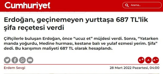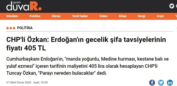 Tarifin maliyetini şişirme yarışına giren CHP basını elini korkak alıştırmadı, bir yoğurt tarifi için 700 lira gibi rakamlar havada uçuştu.
