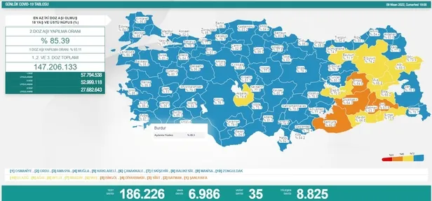 8 NİSAN 2022 KORONAVİRÜS TABLOSU