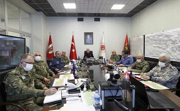 Harekat Merkezi'nde Pençe Kilit Operasyonu kapsamında gerçekleştirilen hava hücum harekatını takip eden Akar, sahadaki son duruma ilişkin bilgi aldı, harekata katılan birliklerin komutanları ile video konferans toplantısı gerçekleştirdi.