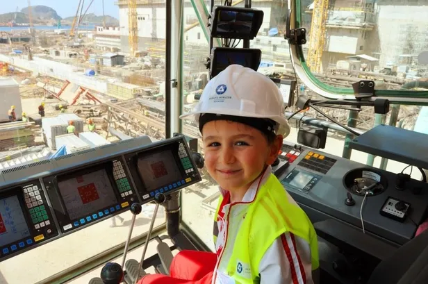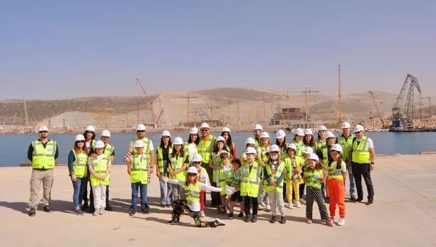Gezinin ilk ayağı, farklı ülkelerden nükleer santral için ekipman taşıyan gemilerin geldiği Doğu Kargo Terminali oldu. Çocuklar, ardından dünyanın en güçlü Liebherr LR 13000 paletli vincini görme ve vinç operatörünün koltuğuna oturma fırsatı yakaladı. İnşaat görevlileri çocuklara ayrıca damperli kamyonlar, ekskavatörler, forkliftler gibi inşaat ekipmanlarının nasıl çalıştırıldığını da gösterdi. İnşaat çalışanları, çocuklara bölgede yaşayan hayvanlar hakkında da bilgi verdi. Nükleer santral inşaat sahasına yakın bölgede karaca, yaban domuzu ve dağ keçilerinin, denizde ise fok ve kaplumbağaların yaşadığını öğrenen çocuklar, nükleer santralin inşaat sahasına özel bir güvenlik bölgesi statüsü verildiğini ve bölgede avlanma yasak olduğu için faunada yaşayan canlıların güvende olduğunu da öğrenmiş oldu. Buradan deniz seviyesinden 200 metre yüksekliğindeki seyir tepesine geçen çocuklar, inşaat sahasının ne kadar büyük olduğunu görme şansını yakaladı. Burada hatıra fotoğrafı çektiren çocuklar, daha sonra kendileri için sprey boya ve şablonların hazırlandığı ofise dönerek, büyük bir duvarı boyadı.