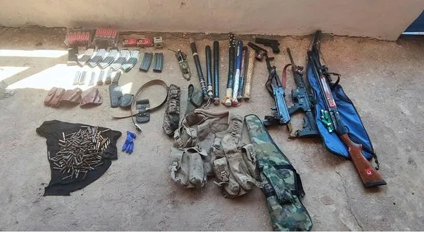Arama sonucu garaj olarak kullanılan bir odadaki atık su borusunun içerisine gizlenmiş 1 adet uzun namlulu silah, 2 adet av tüfeği, 306 adet uzun namlulu silah mermisi, 561 tabanca mermisi, 5 adet uzun namlulu silah şarjörü, 7 adet çivi uçlu beyzbol sopası, 2 adet hücum yeleği, 1 adet oluklu bıçak ele geçirildi.