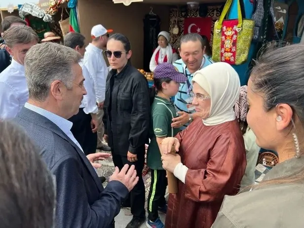 Karabağ Atlı Gösteri Ekibi'nin gösterisini izleyen Emine Erdoğan, ardından Türk İşbirliği ve Koordinasyon Ajansı Başkanlığının (TİKA) organizasyonuyla 20 ülkenin yöresel lezzetleri, hediyelik eşyaları, kıyafetlerinin sergilendiği "Evrensel Lezzetler" standını gezdi.