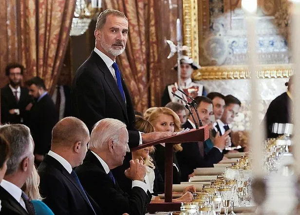 İspanya Kralı 6. Felipe, yemekte yaptığı konuşmada, Finlandiya, İsveç ve Türkiye arasında imzalanan üçlü memoranduma atıfta bulunarak, Erdoğan, Niinistö, Andersson ve Stoltenberg'in "hayırlı bir iş için" yemeğe katılamadıklarını söyledi.