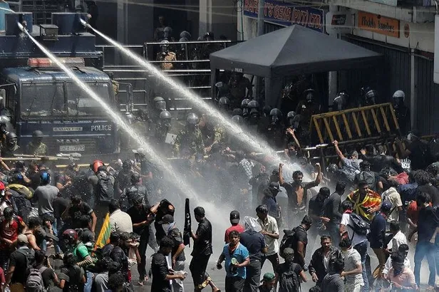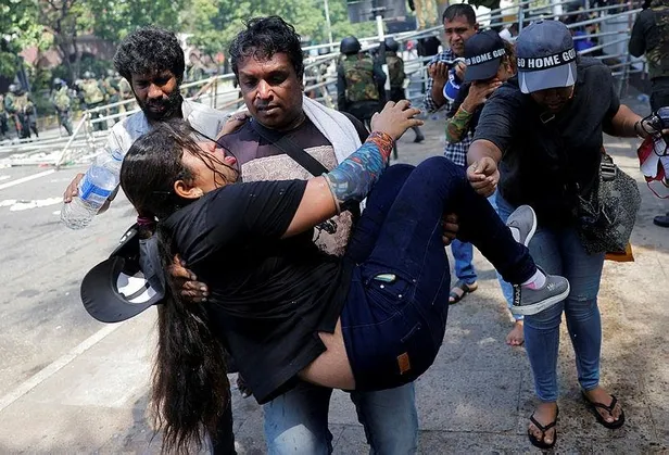 Ellerinde siyah bayraklar taşıyan ve ülke genelinden gelen binlerce gösterici, protestolar nedeniyle akşam sokağa çıkma yasağı ilan edilen ancak daha sonra kaldırılan başkent Kolombo'da bir araya gelmişti.
