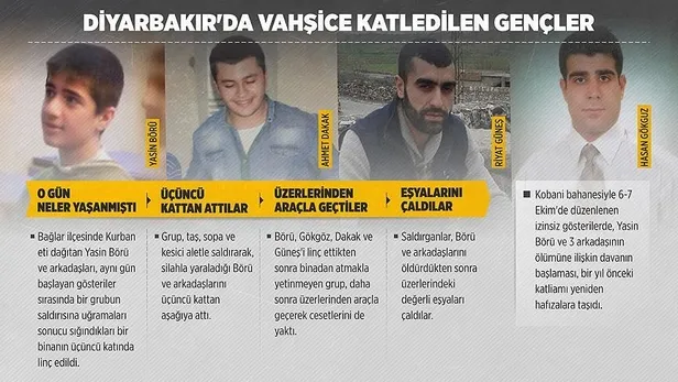 Terör yandaşları sakallı gördüğü vatandaşları "DEAŞ mensubu" diyerek katlederken, Suudi Arabistan'dan bayram tatili için Türkiye'ye gelen yabancılar bile katliamın kurbanı oldu. Diyarbakır'da kurban eti dağıtırken katledilen Yasin Börü ve arkadaşları da "DEAŞ üyesi" ilan edilerek vahşice katledildi.