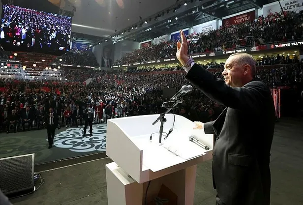Erdoğan, Ankara Spor Salonu'nda düzenlenen AK Parti "Türkiye Yüzyılı" Tanıtım Toplantısı'ndaki konuşmasına salondakileri selamlayarak başladı.