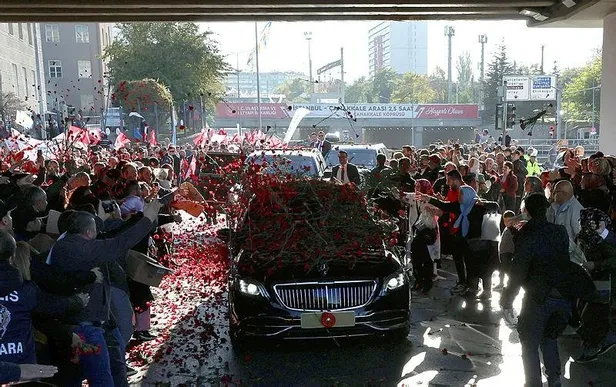 Başkan Erdoğan'a yol güzergahı boyunca sevgi gösterisinde bulunan vatandaşlar, Erdoğan'ın makam aracını attıkları karanfillerle kapladılar.