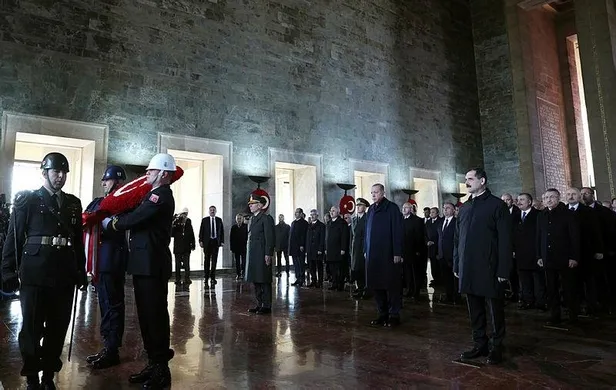 Erdoğan, kırmızı beyaz karanfillerden oluşan ay yıldızlı çelengi, Atatürk'ün mozolesine bıraktı.