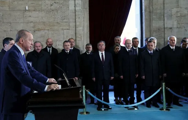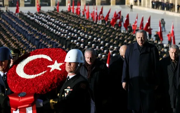Son dakika haberi! Türkiye Cumhuriyeti’nin kurucusu Gazi Mustafa Kemal Atatürk’ün aramızdan ayrılışının üzerinden tam 84 yıl geçti. Başkan Erdoğan ve devlet erkanının Anıtkabir'de katıldığı törende saygı duruşunda bulunuldu İstiklal Marşı okundu. Misak-ı Milli Kulesi'nde Anıtkabir Özel Defteri'ni imzalayan Başkan Erdoğan, mesajında, "Türkiye Cumhuriyeti'ni Türkiye Yüzyılı vizyonuyla geleceğe hazırlıyoruz. Durmayacak, yılmayacak, mücadelemizi kararlılıkla sürdüreceğiz." ifadelerini kullandı.