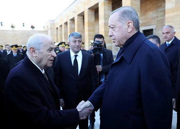 Başkan Recep Tayyip Erdoğan başkanlığındaki kortejde, MHP Genel Başkanı Devlet Bahçeli de yer aldı. Erdoğan ve Bahçeli tören sonrası Anıtkabir'de kısa bir sohbet gerçekleştirdi.