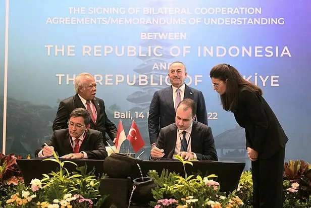 Son dakika haberi! Türkiye ile Endonezya arasında savunma sanayisi, teknoloji, ormancılık, çevre ve kalkınma alanlarında işbirliğini içeren 5 anlaşma imzalandı. Endonezya'nın küresel zorluklara rağmen G20 Zirvesi'nde başarılı bir başkanlık yürüttüğünü söyleyen Çavuşoğlu, "Ayrıca, Endonezya Cumhurbaşkanı Widodo ve Endonezya'nın onun liderliğindeki ilerlemesini de takdir ediyoruz. İslam dünyasının iki büyük gücü olarak, işbirliğimiz tüm dünyadaki Müslümanlar için kritik önemde." diye konuştu.