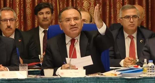 "Bakın, ben o konuda açıklamamaya özen gösterecektim ama baktım iş büyük; fotoğrafları, o görüntüleri izledikten sonra daha salondan çıkıp o koridorlarda konuşanları, deşifreleri gördükten sonra ben Adalet Bakanıyım, Hakimler Savcılar Kurulunun Başkanıyım, orada görev yapan hâkime, savcıya hakaret edene cevap vermek, haddini bildirmek, had bilmeze had öğretmek benim vazifem." dedi.