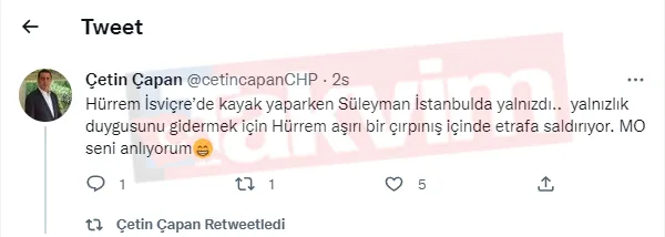 Yurdakul, sosyal medya hesabı Twitter üzerinden yaptığı paylaşımda Çapan'ın Ongun'e hedef alan 'Hürrem' tweetini alıntılayarak "Kim diye düşünüyordum. Bulmaca çözüldü" ifadelerini kullandı.