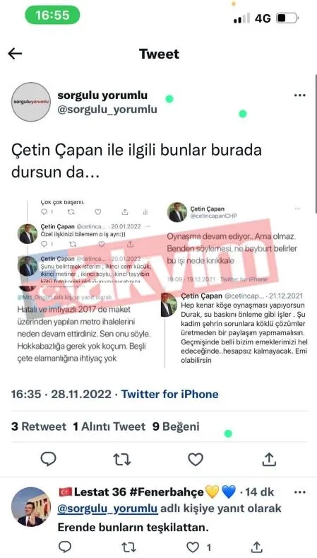 Çetin Çapan'ın paylaşımlarının ekran görüntüsünün yer aldığı bir tweet paylaşan Sorgulu Yorumlu, "Çetin Çapan ile ilgili bunlar burada dursun da..." ifadelerini kullandı.