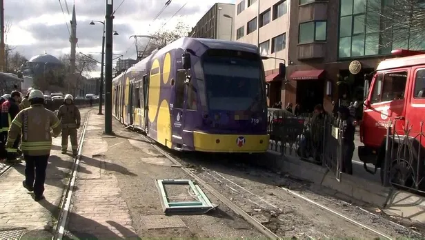Son dakika haberi! İstanbul Kabataş'ta raydan çıkan tramvay elektrik direğine çarptı. Kazada 4 yolcu yaralandı. Olay yerine sağlık ve itfaiye ekibi sevk edildi. Kazada parmağından yaralanan tramvay yolcusu Haydar Karaman, "Tramvay hızlı gidiyordu, rayın değiştiği makasa çok hızlı girdi. Sonra da raydan çıktı, direğe çarptı" dedi.