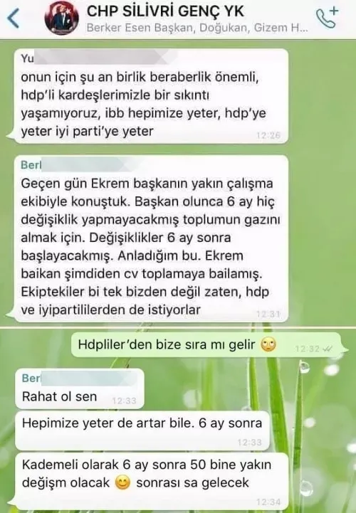 2019'daki seçimlere aylar kala CHP Silivri İlçe Gençlik Kolları'na ait bir WhatsApp sohbet grubundaki yazışmalar ifşa olmuştu. CHP'lilerin 'CV' topladığı ve 6 ayda 50 bin işçi çıkarılacağı ifade edilmişti.
