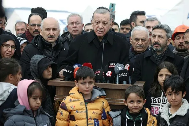 Erdoğan, "asrın felaketi" olarak nitelenen, Akdeniz, Güneydoğu ve Doğu Anadolu bölgelerindeki 10 ili etkileyen depremlerin ardından geldiği Adıyaman'da açıklamada bulundu.