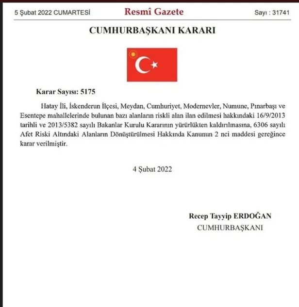 Mahkeme "Riskli Alan" kararını iptal ediyor. Cumhurbaşkanımız da mahkemenin kararına uygun olanı yapıyor.