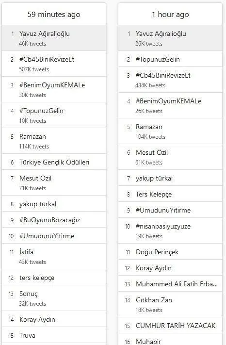 Yavuz Ağıralioğlu hakkında 1 saat içinde yaklaşık 60 bin tweet atıldı.
