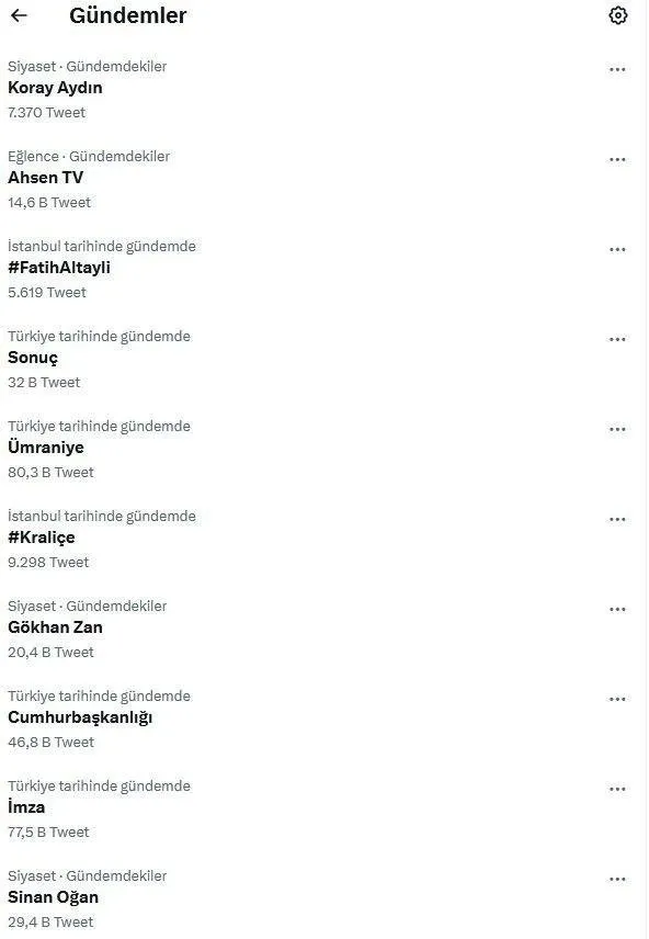 Trend listesi