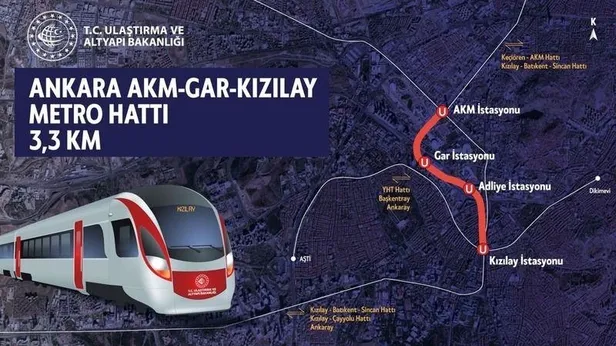 Sadece İstanbul'da değil ülke genelinde raylı sistem yatırımlarının sürdüğünü anlatan Karaismailoğlu, Ankara'da Gar, Adliye ve Kızılay olmak üzere 3 istasyondan oluşan AKM-Gar-Kızılay Metro Hattı'yla Keçiören'den Kızılay'a aktarmasız metro ulaşımının sağlanacağını söyledi.